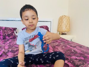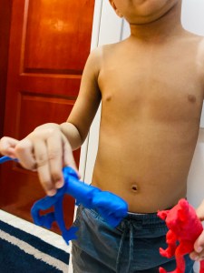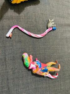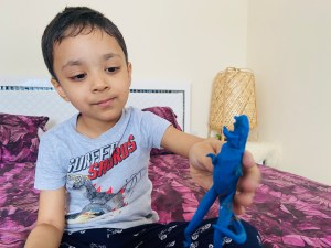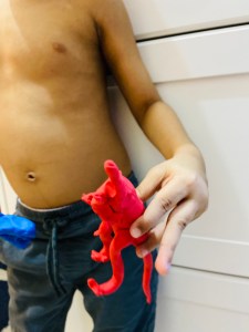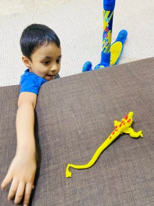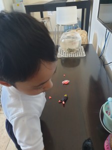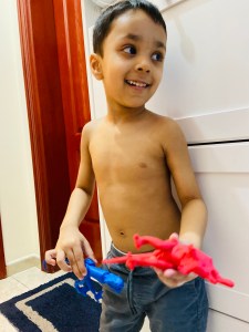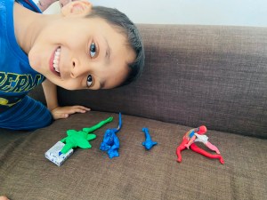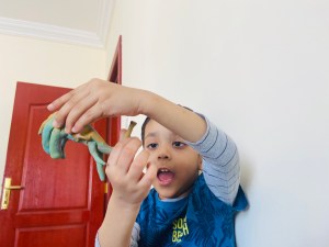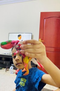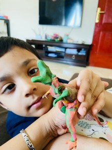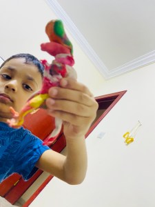 Although I want to tell you..this’s not a miracle happened from one night that he learned everything.. but slowly slowly.. step by step.. sometimes tasting the dough 😂 he learned how to mold..how to made a shape.. but when he was grownup to 3 he totally knew how to use clay and was making marvelous shapes and designs from it (animals and some toys characters) even we can’t make these kinds of shapes like him..
