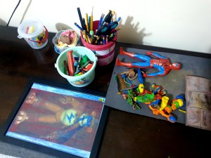 එයා ඇස් එහෙම ලස්සනට ගන්න හැටි..ඒයා මවන් ඉන්න… එයා දැකපු ඒ රුපේ හැම පොඩි දෙයක් ගැනම සැලකිලිමත් වෙන හැටි හරිම අපුරුයි..(පහලින් දාලා තියෙනවා එයා ගොඩක් පොඩි කාලෙ ඉදන් මේ වෙනකන් කරපු ක්ලේ නිර්මාණ.. සමහර ලස්සන නිර්මාණ වල පොටෝ ගන්න phone එකේ ඉඩ නැතුව අමතක උන අවස්ථාවන්ද..ආයේ..ඉතින් පුතා එක කඩල වෙන එකක් හදලා.. නැත්නම් අපේ ඇගට යට වෙලා තැලිලා..විනාස උන අවස්ථාවන්ද නැතුවාම නෙවෙයි..)