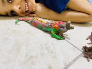 ඉතින් මං ඒ කියනව වගේ මේ හැමදෙයක්ම එයා කරන්නෙ එක රෑ කින් නෙවෙයි.. මුල් කාලේ පාන් පිටි කකා හුරු වුනු අත පස්සේ ක්ලේ වලින් ලස්සනට හැඩ තල මවනවා..දැන් අපේ පුතාට අවුරුදු 5ක් වෙනවා.. ඒත් එයා අවුරුදු 3 වෙනකොට වගේ හරිම ලස්සනට අපිටත් හිතා ගන්න බැරි විදියට දේවල් ක්ලේවලින් රුප අබන්න පටන් ගත්තේ.. මේ වෙනකොට අපිටවත් බෑ එයා තරම් ලස්සනට හිතලා ඒ දේවල් කරන්න..