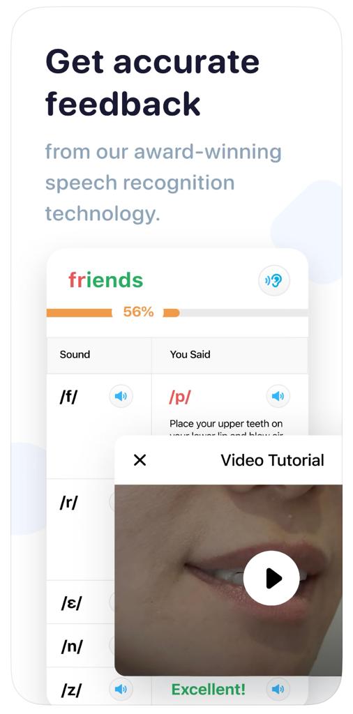 ELSA Speak is the only English-speaking and communication learning application (App) that can accurately and correctly correct pronunciation errors for each character due to ELSA AI’s deep learning and speech recognition technology (Artificial Intelligence Technology), and instant feedback and error correction. Instructions are also provided on the spot.